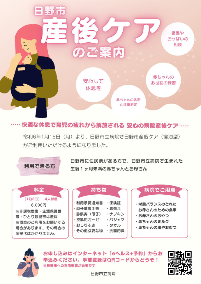 ※詳細は日野市立病院産後ケア(宿泊型)のご案内をご覧ください。
